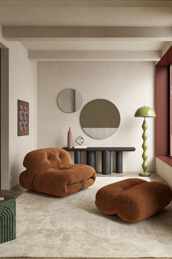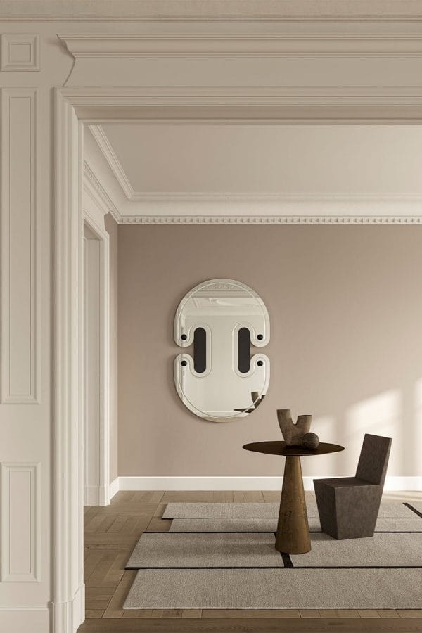 Le miroir Reverso est une pièce maîtresse. Leur expertise multidisciplinaire, allant du design de produit à l’architecture d’intérieur, se reflète dans cette création élégante.