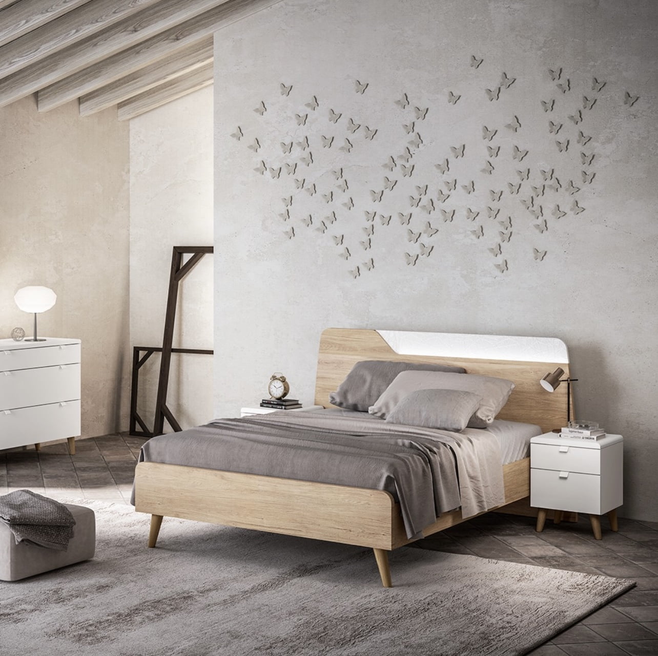 Optez pour une touche de fantaisie dans votre chambre à coucher avec le lit tête graphik BLOOM ! Le motif graphique blanc de sa tête de lit lui confère un look plus sophistiqué, idéal pour créer une atmosphère chaleureuse et moderne à la fois. Disponible en 2 finitions différentes, blanc neige et chêne naturel, ce lit ultra moderne trouvera sa place dans votre chambre d’amis ou dans votre suite parentale.
