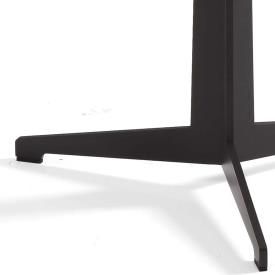 Châssis en métal laqué époxy gris anthracite, dessus en verre trempé 8mm sérigraphie aspect bois naturel ou bois grisé.