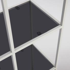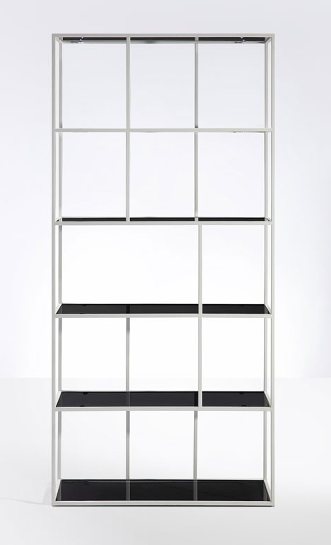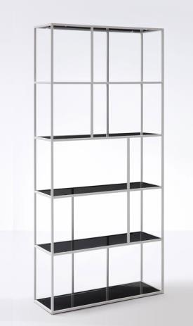 Structurez votre intérieur avec l'Étagère VISTA grand modèle au design épuré en métal blanc et étagères en verre noir pour créer un contraste saisissant. Idéale pour exposer vos objets décoratifs avec élégance, cette étagère combine fonctionnalité et esthétique. Châssis en métal laqué époxy blanc, étagées en verre noir épaisseur 8mm