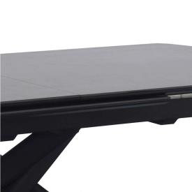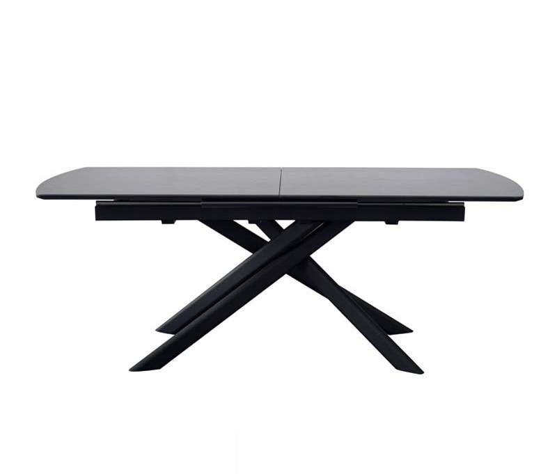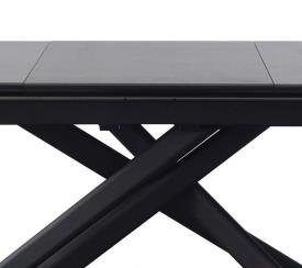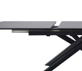 Châssis et piétement en métal noir, dessus et allonge pop-up en céramique Jade blanche 876 brillante épaisseur 6mm collée sur du MDF.